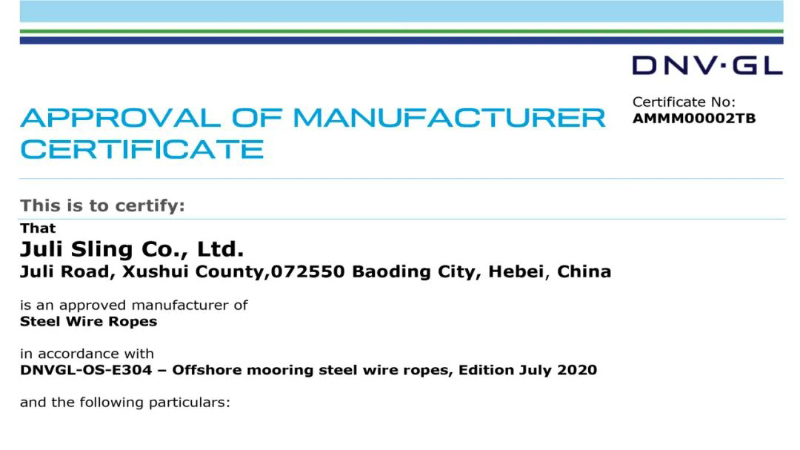 為助力我國藍碳經濟大力發展,從而促進海洋生態良性循環,助力“碳達峰、碳中和”目標的推進步伐,實現海洋經濟可持續發展,巨力索具近年來開展了一系列產品研發工作。目前研發主要以鋼絲繩系泊纜、纖維系泊纜、系泊鍛造連接件產品為主,并取得了DNVGL 工廠認可證書、ABS 設計評估證書,同時取得了相關的產品認證。成功應用于海峽 1 號海洋牧場、三峽引領號漂浮式風機、中集來福士浮式光伏等項目。