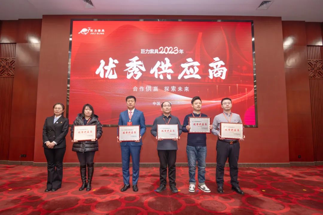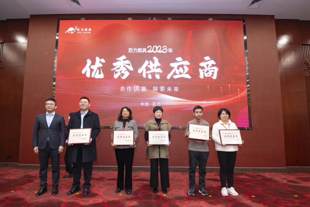 2023年,巨力索具和供應商伙伴在高層互訪、產品開發、技術共享等領域取得了諸多成果。為感謝供應商在品質、創新、保供及合作等方面作出的突出貢獻,本次大會向10家供應商授予了“優秀供應商”獎項。