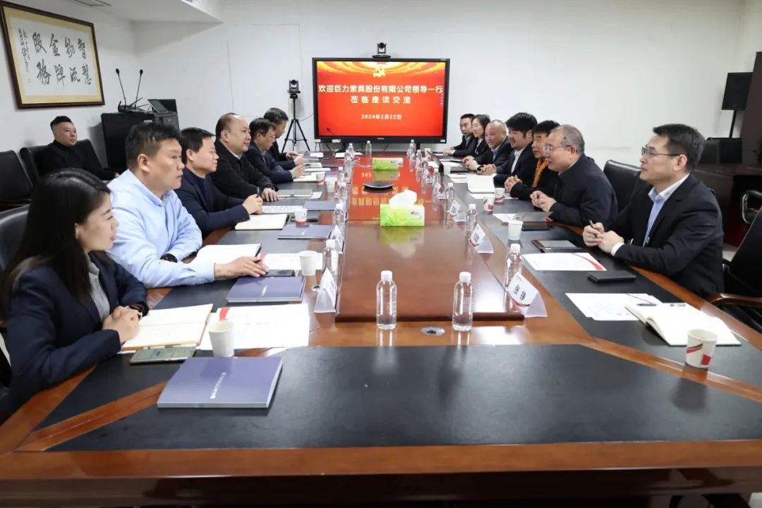2月22日,巨力集團黨委副書記、巨力索具董事長楊建國,巨力索具黨總支書記、總裁楊超一行赴陜西煤業化工物資集團有限公司(以下簡稱“陜煤物資集團”)座談交流,巨力索具副總裁亢國雷、亢劍隨同參加。