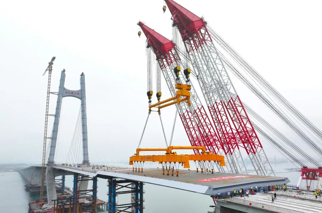 隨著最后一塊鋼箱梁成功吊裝到位