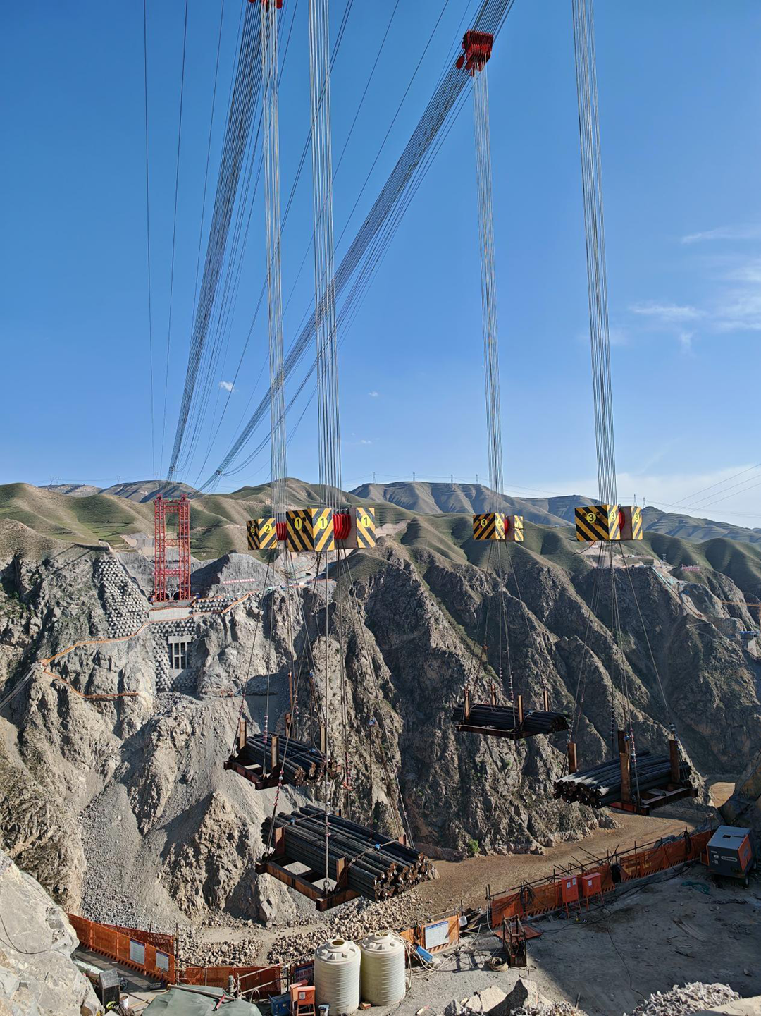 2025年5月10日,蘭永臨高速公路關(guān)鍵控制性工程洮河大橋500噸大型纜索吊裝系統(tǒng)試吊完成,標(biāo)志著我國西北地區(qū)在建最大上承式鋼管混凝土拱橋建設(shè)取得關(guān)鍵突破,巨力索具吊裝系統(tǒng)成功為大橋主體施工按下“加速鍵”,大橋正式邁入主體結(jié)構(gòu)施工階段。