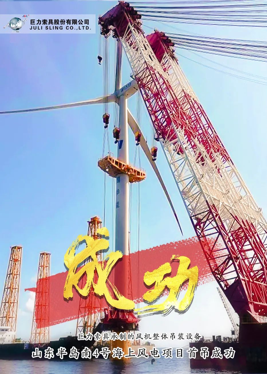巨力索具承制的風(fēng)機(jī)整體吊裝產(chǎn)品在山東半島南4號海上風(fēng)電項目首吊成功