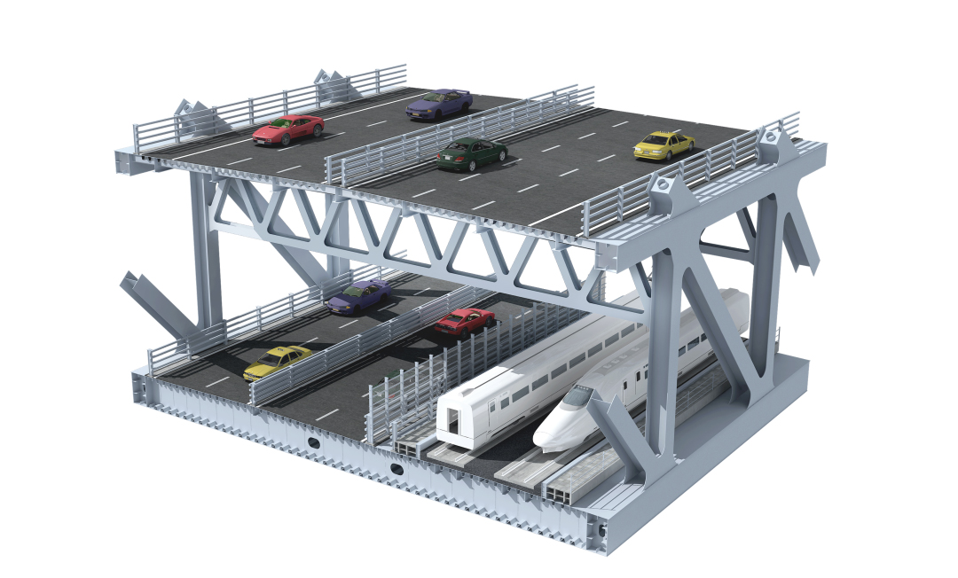 常泰長江大橋主航道橋鋼梁采用雙主桁“N”形鋼桁梁,桁高15.5米,桁中心間距35米,主橋鋼梁在工廠內(nèi)整節(jié)段制造、運輸,全橋共91個大節(jié)段,節(jié)段長度14米~28米,節(jié)段重量900噸~1856噸。
