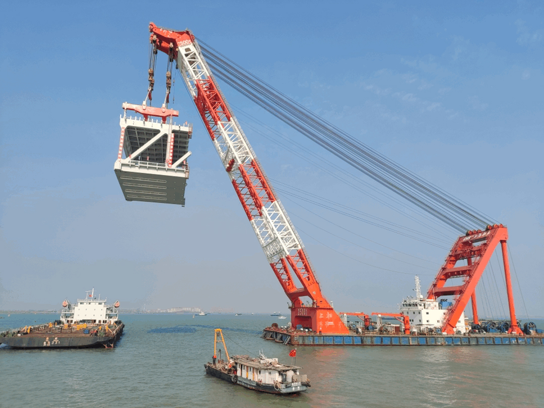 面對施工中高聳支架體系安裝、超高空吊裝、長距離同步拖拉滑移等眾多施工技術(shù)難題,加之該地域海工環(huán)境復(fù)雜,對吊具平衡性、安全性、精準(zhǔn)度提出很大挑戰(zhàn),巨力索具項目團(tuán)隊在吊具方案設(shè)計上,多次與項目部超前籌劃、比選論證專項吊裝施工方案,從吊具結(jié)構(gòu)、材料性能、全橋鋼箱梁兼容性等方面進(jìn)行優(yōu)化升級,確保吊裝工作順利進(jìn)行。
