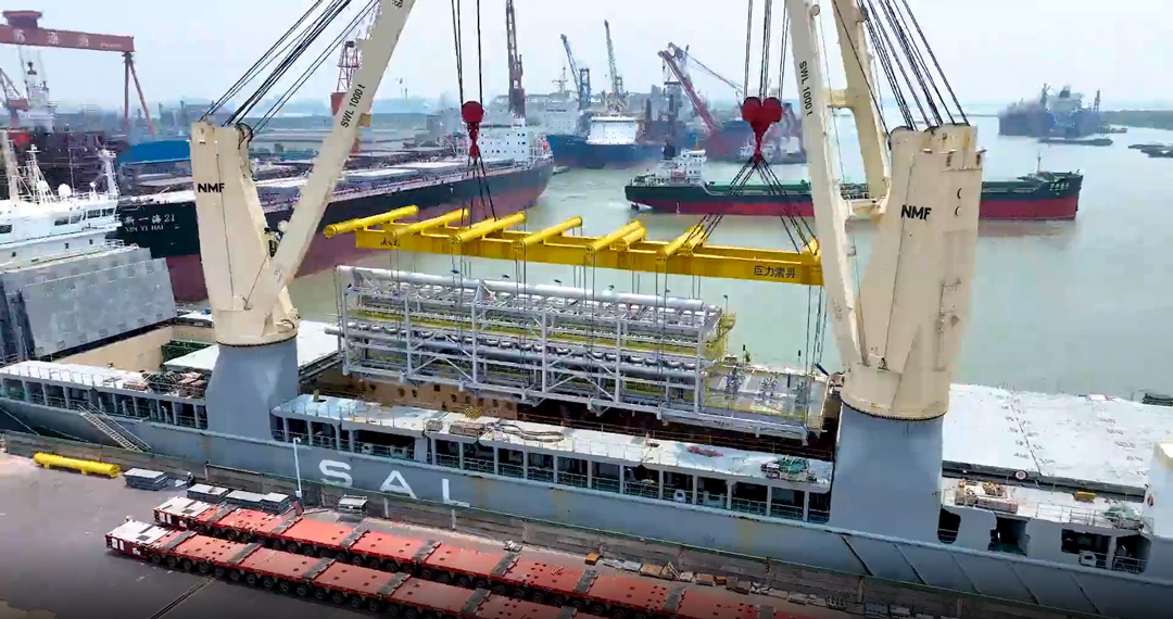 據了解模塊建造由森松(江蘇)重工有限公司承接。其負責人介紹:“根據計劃,我們將建造99個煉油模塊,總重量超過23000噸。這些模塊會通過水運,分批發往伊拉克,并于2023年底交付完成。”