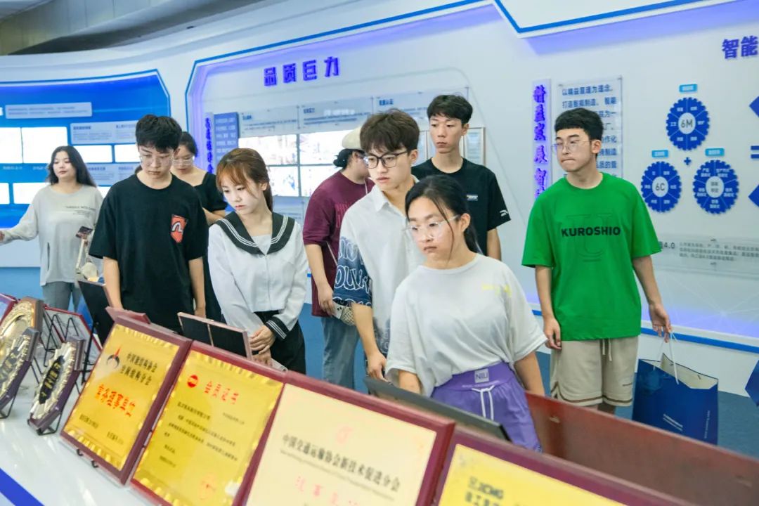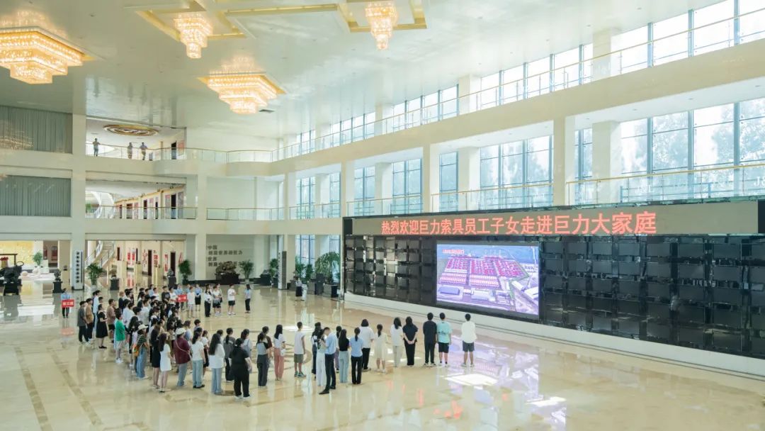 走進集團展廳,一場跨越時空的交流拉開帷幕。同學們跟隨講解人員的步伐,了解了巨力集團38年的發展變革、產業分布、企業文化等等。38年的歷史赫然擺在面前,同學們既新奇又激動,感嘆于大國重器“智”造的風采,并為自己的父母參與其中感到驕傲。